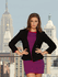 Chicly shaped blazer is double breasted with four marbled black buttons. Single breast pocket, two front besom pockets. Fully lined. Wool/cotton. By Minnie Mortimer. USA. Black.